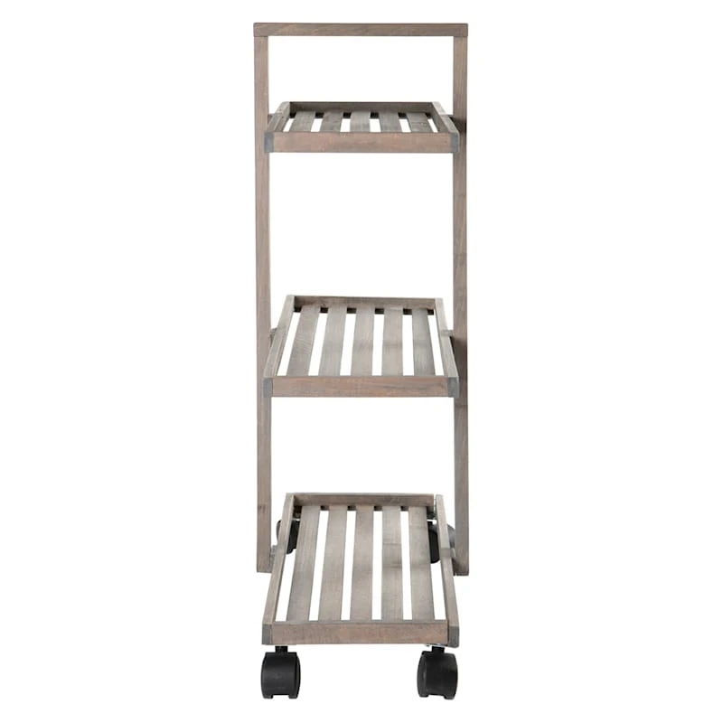 3-Tier Grey Wood Rolling Cart