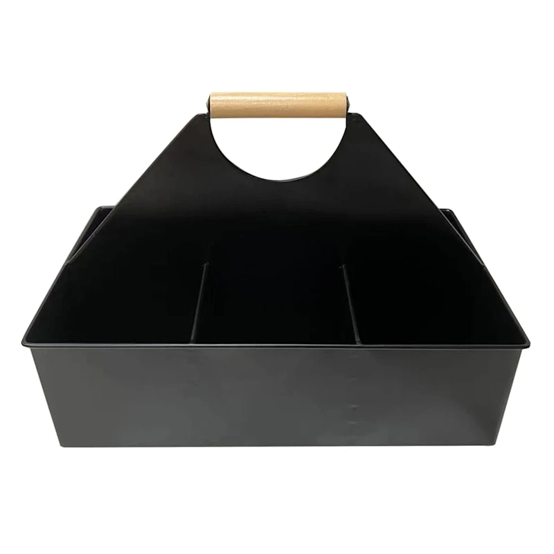 METAL CADDY WITH WOOD HANDLE
