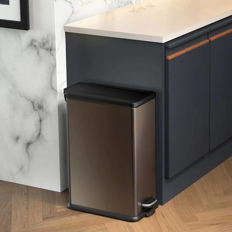 Slim Black Stainless Steel Rectangle Pedal Trash Bin, 45l