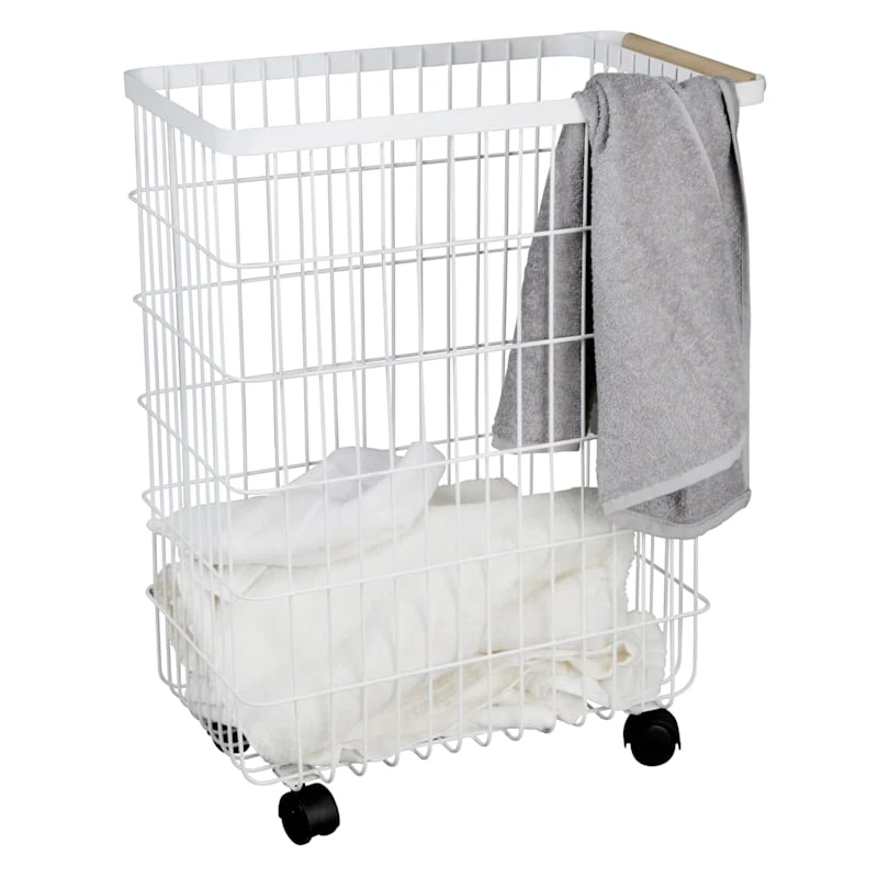 Ty Pennington Nova Slim Metal Rolling Laundry Hamper, White